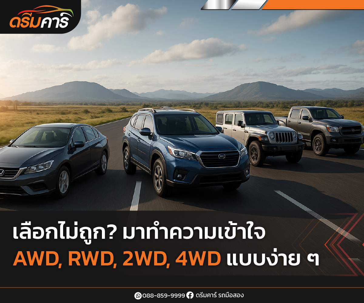 หลายคนที่กำลังหาข้อมูลก่อนซื้อรถยนต์คงเคยได้ยินคำว่า AWD, RWD, 2WD และ 4WD ผ่านหูมาบ้าง แต่ก็มักจะเกิดความสงสัยว่า AWD RWD 2WD 4WD คืออะไร และแตกต่างกันอย่างไร แต่ละระบบมีข้อดีข้อเสียแบบไหน และควรเลือกใช้แบบไหนให้เหมาะกับไลฟ์สไตล์ของเรา บทความนี้จะพาไปทำความเข้าใจระบบขับเคลื่อนรถยนต์ทั้ง 4 แบบอย่างง่าย ๆ