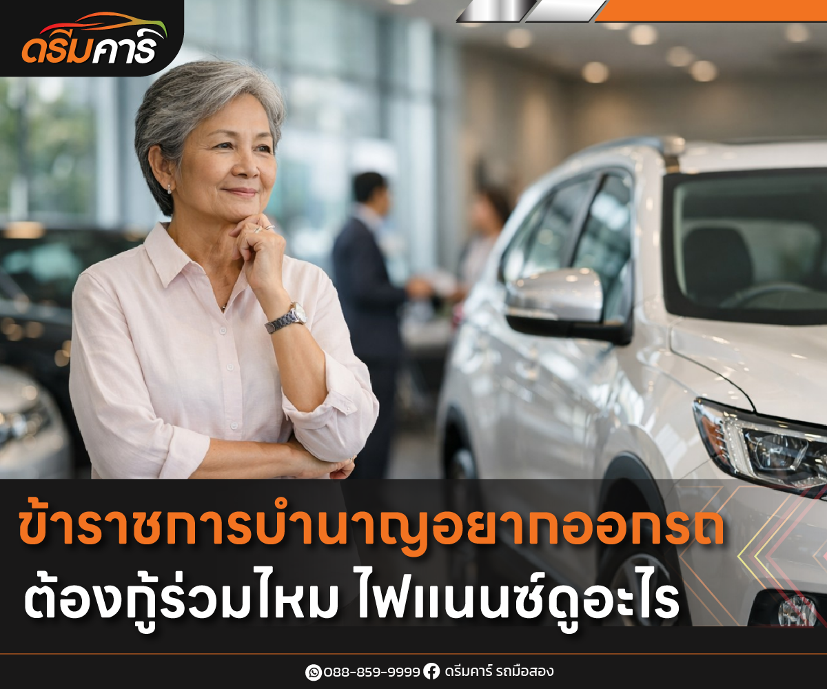 หลังเกษียณอายุราชการ หลายคนยังมีความจำเป็นต้องใช้รถ ไม่ว่าจะเพื่อเดินทางในชีวิตประจำวัน ดูแลครอบครัว หรือทำกิจกรรมหลังเกษียณ คำถามที่ถูกค้นหาบ่อยมากคือ “ข้าราชการบำนาญ อยากออกรถ ต้องกู้ร่วมไหม” เพราะหลายคนกังวลว่าไม่มีเงินเดือนประจำแล้ว ไฟแนนซ์จะอนุมัติหรือไม่ บทความนี้จะพาคุณไปทำความเข้าใจทุกประเด็น ตั้งแต่หลักการพิจารณาของไฟแนนซ์ ไปจนถึงกรณีที่กู้คนเดียวได้ และกรณีที่ควรมีกู้ร่วม เพื่อให้ตัดสินใจได้อย่างมั่นใจมากที่สุด