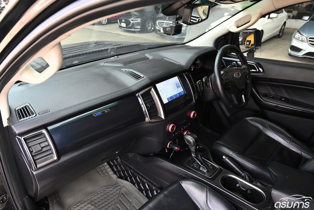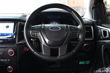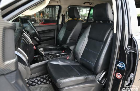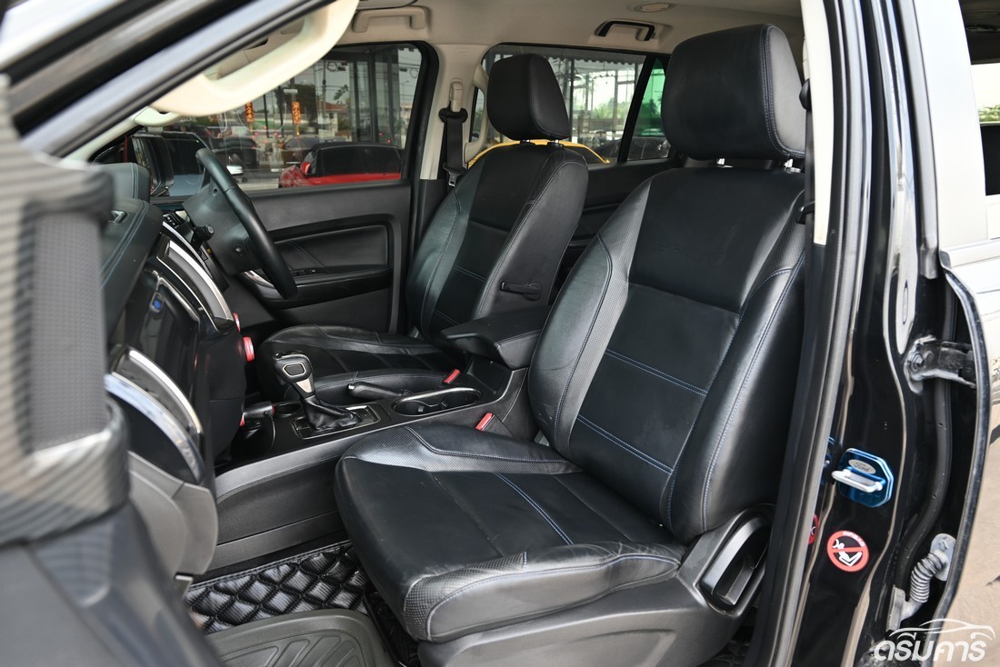 เบาะนั่งหุ้มหนังสีดำ ตกแต่งด้วยด้ายสีน้ำเงิน